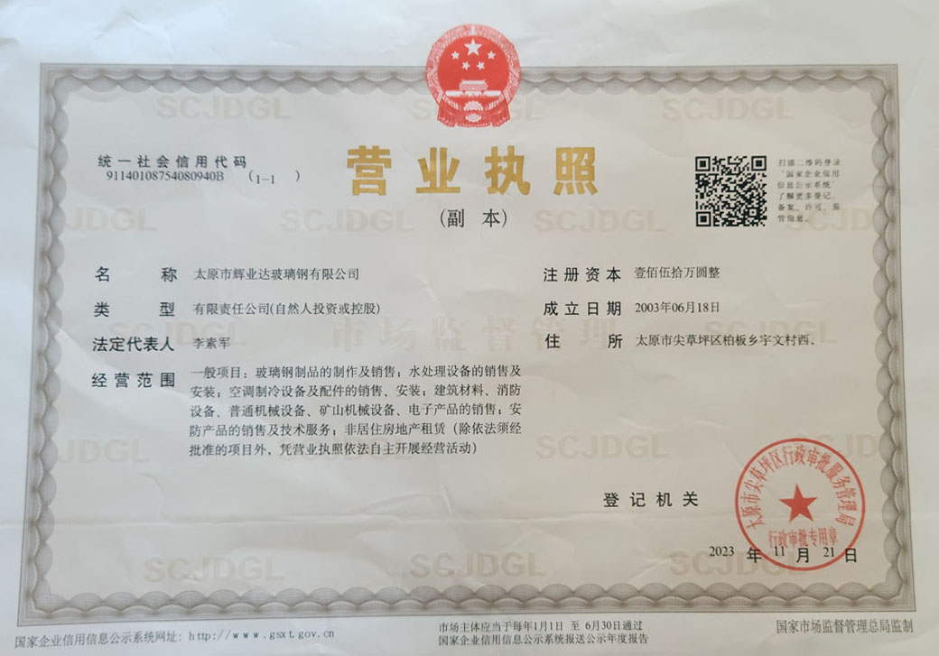 太原市輝業(yè)達玻璃鋼有限公司是一家集玻璃鋼科研、生產(chǎn)、銷售與技術(shù)服務(wù)為一體的多元化公司。同時備有一支高素質(zhì)的員工隊伍,團結(jié)而智慧的管理層,科學(xué)的管理方法,雄厚的技術(shù)實力為企業(yè)的發(fā)展奠定了基礎(chǔ),這也是給用戶提供優(yōu)秀的施工質(zhì)量,優(yōu)質(zhì)的產(chǎn)品和服務(wù)的有力保證。