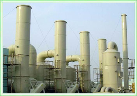 玻璃鋼洗滌塔是硫酸生產(chǎn)線的主要設(shè)備,該塔的主要作用是:由塔底進塔的帶有礦塵、砷、硒、氟、二氧化硫等雜質(zhì)和二氧化碳氣體,經(jīng)填料層,由塔頂排出。而稀硫酸通過塔頂?shù)膰娮靽娏,使之填料層中氣液充分接觸,除去雜質(zhì),達到凈化氣體的作用。